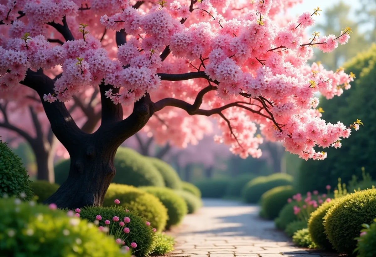 Associez votre arbre du Japon rose avec d’autres plantes pour créer un paysage équilibré et visuellement captivant.