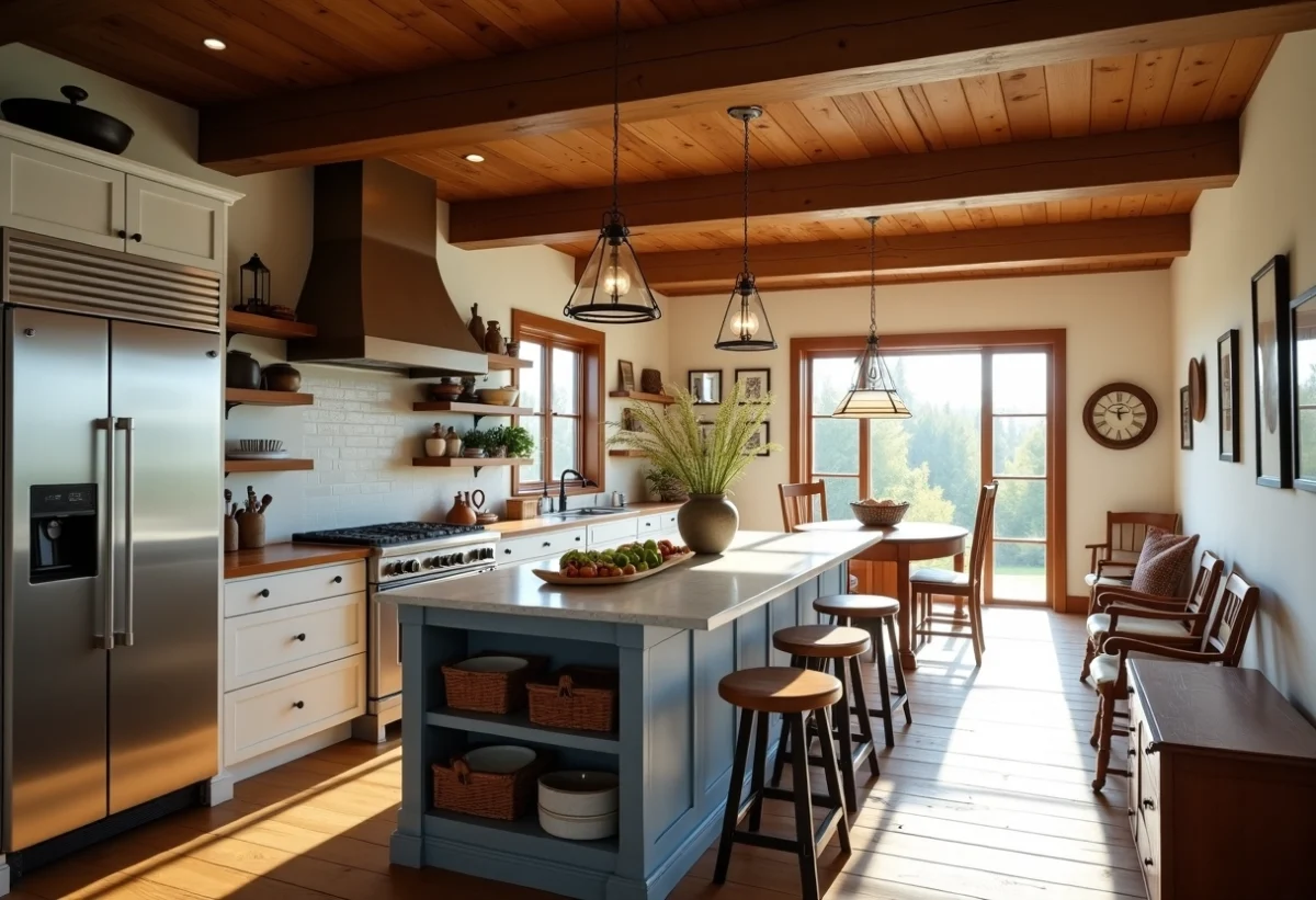 La domotique est devenue un atout majeur pour allier confort et modernité. Installez des systèmes de contrôle pour l’éclairage, le chauffage et la sécurité. Préférez des commandes discrètes, intégrées dans les murs ou les plafonds. La connectivité s’invite aussi dans les cuisines avec des appareils intelligents. Ils améliorent la fonctionnalité sans compromettre le charme rustique.
