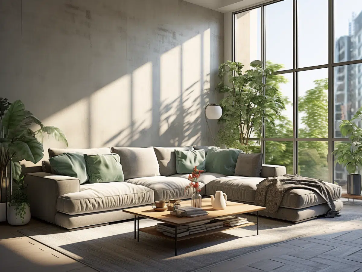 Chinées et sol en béton ciré, la tendance salon pour 2024 adopte un style minimaliste. Les tons neutres sont inspirés par la nature et dominent la palette. Cela inclut :
