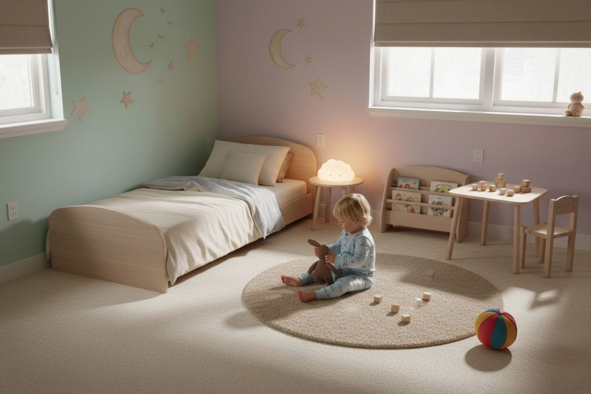 L’absence de barrières sur les lits au sol peut présenter un risque si l’enfant décide de quitter son lit pendant la nuit. Il devient alors vital de sécuriser la chambre en fixant les meubles, en couvrant les prises électriques et en assurant un espace de jeu sans danger.