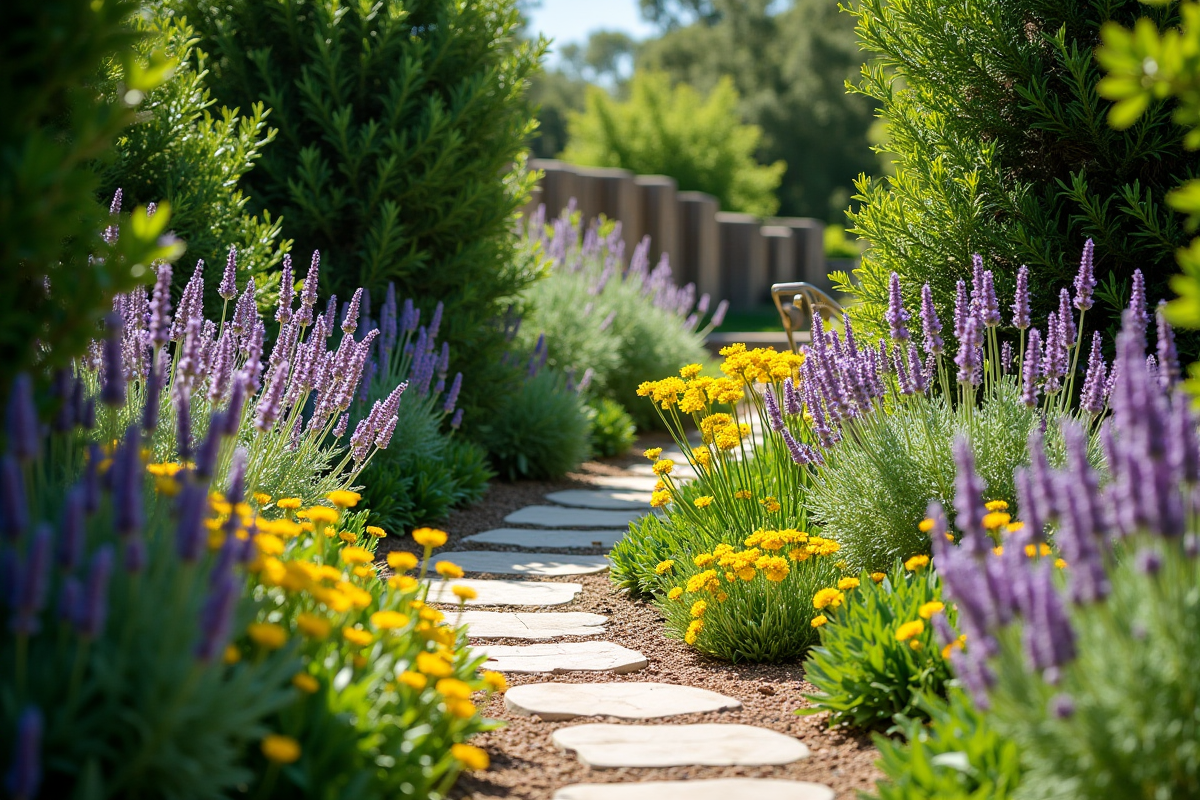 Créer un jardin orienté plein sud oblige à une sélection rigoureuse. Certaines plantes vivaces plein soleil offrent non seulement une solidité à toute épreuve, mais aussi un attrait visuel qui dure. La lavande incarne le Sud, parfumant l’air et dessinant des lignes nettes dans les massifs. À ses côtés, thym et romarin traversent sans mal les épisodes caniculaires, tout en gardant leur feuillage tout au long de l’année.